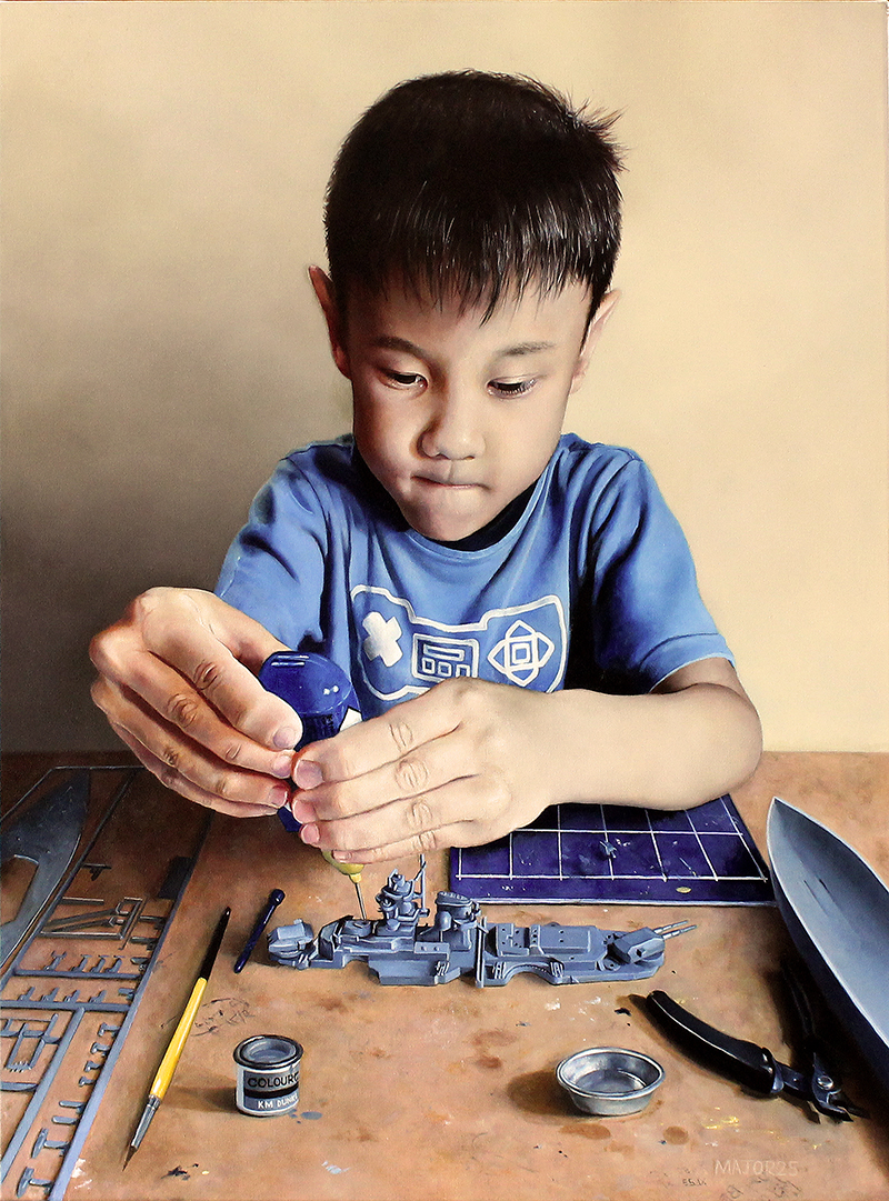 “Out of the darkness”, is a continuation of the “Out of the Angels” series and “On the edge of darkness” series from a few years ago. It is based on the classical tradition of painting; development of a personal creative vision; and an expression and definition of humanity through pictorial form, whereby a relationship is established between an artist and artefact- the real and ideal.